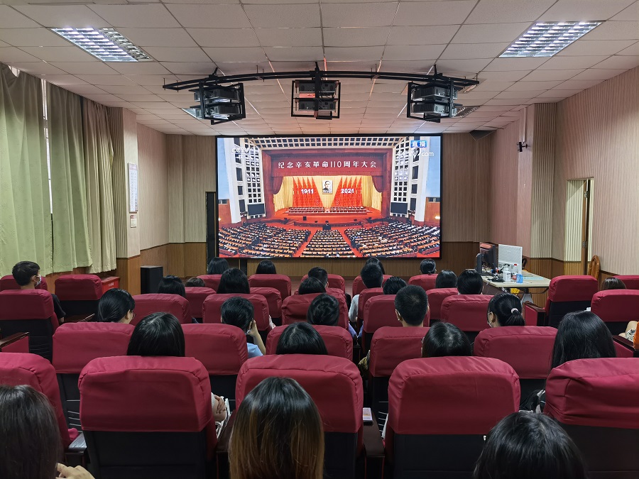 10月9日上午,纪念辛亥革命110周年大会在北京人民大会堂隆重举行,习近平总书记出席大会并发表重要讲话。公司党总支组织公司师生党员和积极分子等代表在一教106红色影视展播厅共同观看了大会直播。其余师生利用网络直播等多种形式观看。
