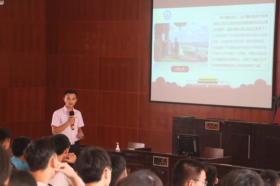 陈玉耿带领同学们共同回顾了中国共产党的百年发展历程,百年征程波澜壮阔,百年初心历久弥坚,同学们从党史中感悟初心使命,传承红色基因。随后他从老员工的入党动机、发展党员的工作流程及开展党日活动等方面,向同学们讲述树立正确入党动机的重要性,详细地解读老员工发展党员的具体标准和工作流程。在帮助同学们了解入党流程的同时,让同学们感受到了入党的庄重、严谨与光荣,进一步帮助同学们明确入党流程,坚定入党信念。最后,他通过列举以往各类的党日活动,充分展现出新时代勇于担当的党员风采与奋发有为的精神面貌,从而引起同学们的深度共鸣,鼓励青年员工积极主动向党组织靠拢,争做“四有”好青年。