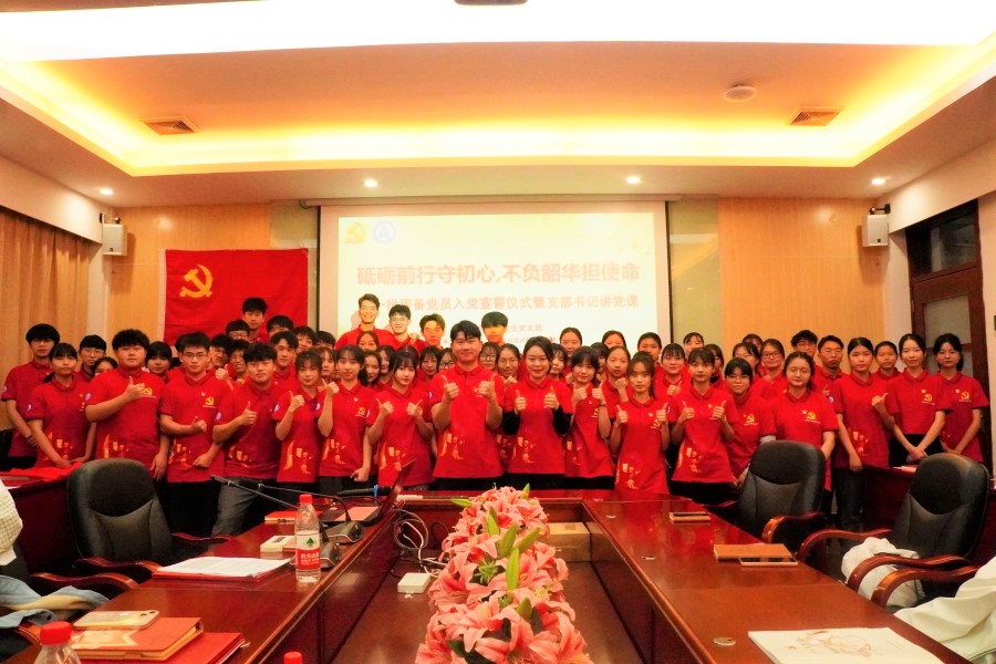 蔡俊发对新一批预备党员的加入表示祝贺与欢迎,希望新一批预备党员以此次大会为新的起点,以党员的标准严格要求自己,发挥先锋模范作用,以实际行动践行入党誓词,做一名合格的共产党员。现场对王玮佳等32名新一批预备党员授予党徽。由蔡俊发带领支部全体党员进行入党宣誓。莫道阳同志代表新预备党员进行表态发言,他号召全体党员应谨记入党初心,更深刻学习和践行党章,全心全意地为党和人民的事业奋斗终身。杨淑敏代表新转正党员发言,她提到,作为一名党员,在思想上应始终保持先进性,在行动上应始终保持积极性,不忘初心,做一名奉献者,充分发挥党员的先锋模范作用。