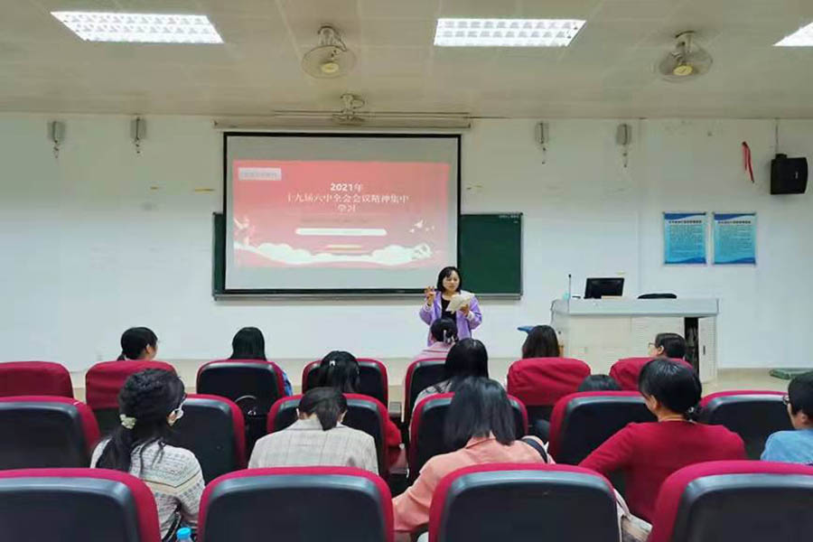 12月9日,太阳成tyc7111cc第二教工党支部全体党员在四教第二报告厅集中学习贯彻党的十九届六中全会精神。会议由支部书记黄丽英主持,全体教工党员在会上积极发言。