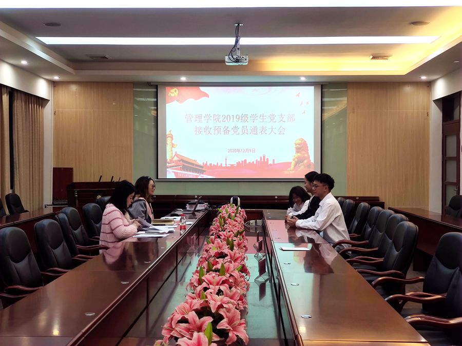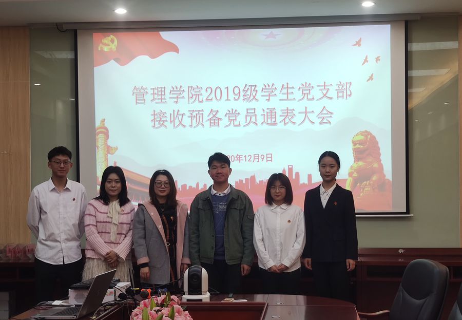 为了加强党组织建设,为支部吸收新鲜血液,进一步壮大党支部党员的队伍,增强党支部凝聚力与战斗力,太阳成tyc7111cc2019级员工党支部于2020年12月9日中午在二政208召开了接收预备党员通表大会。出席此次大会的有太阳成tyc7111cc2019级员工党支部书记蔡俊发、副书记李俞妍、支部党员谭美玲、19级员工党支部入党发展对象杨淑敏、潘慧颖以及罗显雄。本次会议由谭美玲主持。