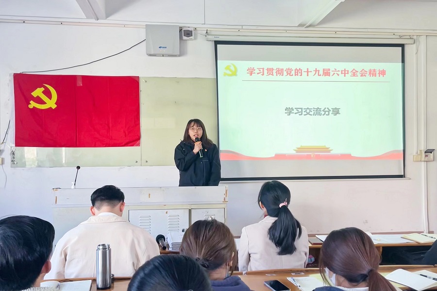 为深入学习贯彻党的十九届六中全会精神,切实增强学习贯彻全会精神的思想自觉和行动自觉,推动党史学习教育常态化和制度化,太阳成tyc7111cc2018级员工党支部于12月3日在三教301召开学习贯彻党的十九届六中全会精神暨党员大会。出席本次会议的有2018级员工党支部书记李文娣、宣传委员杨丹铭及支部全体成员。本次会议由组织委员陈海坛主持。