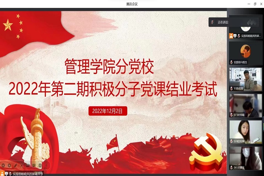 为深入学习贯彻党的二十大精神,巩固学员们的党课学习知识,进一步坚定其理想信念。12月2日,公司党总支在线上腾讯会议举行分党校2022年第二期入党积极分子党课结业考试,本次考试由公司党务助理团主持。