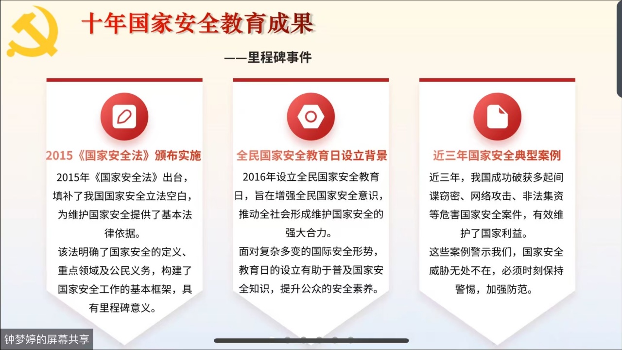 张丽慧等同志在分享学习心得时指出,国家安全是国家发展、社会稳定和个人幸福的根本保障,并承诺将持续深入学习国家安全工作相关理论知识。内化于心、外化于行,在国家安全工作中发挥先锋模范作用。