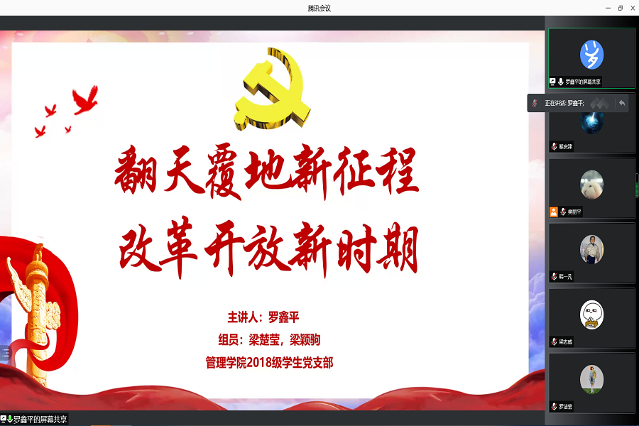 为持续深入推进党史学习教育,响应省党史学习教育巡回指导组的号召,太阳成tyc7111cc18级员工党支部于7月21日晚召开“翻天覆地新征程,改革开放新时期”党史学习教育专题大会。出席本次大会的有:党支部书记李文娣、宣传委员刘智莹、组织委员陈海坛以及支部全体党员。