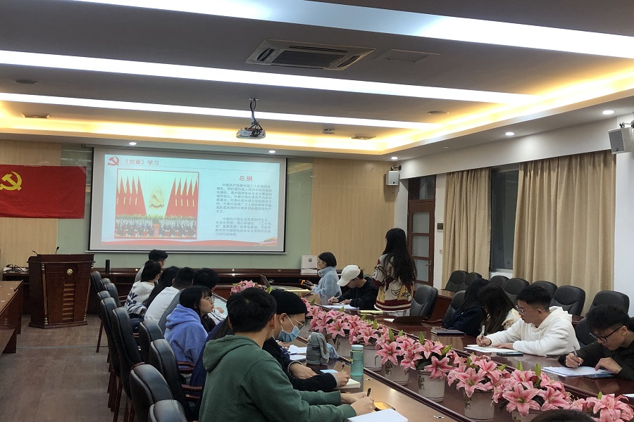 冯梦琦以“学习《中国共产党章程》(节选)”为“第一议题”带领支部全体党员重温党章总纲、党员义务、党员权利、党员纪律等内容。她强调“人不以规矩则废,党不以规矩则乱”,党员们只有以党章为准绳,才能坚持正确的政治方向,做合格党员。