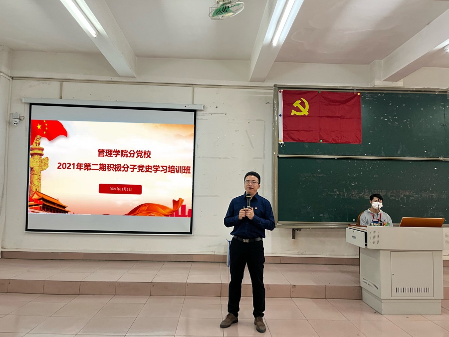 为进一步提高入党积极分子对党的思想认识,提高政治觉悟,增强党性修养,加强党史学习,11月1日,公司党总支在第一教学楼106开展2021年第二期积极分子党史学习教育培训班第一讲,本次党课由公司党总支书记汪椿东主讲,组织员杨红烨主持会议。