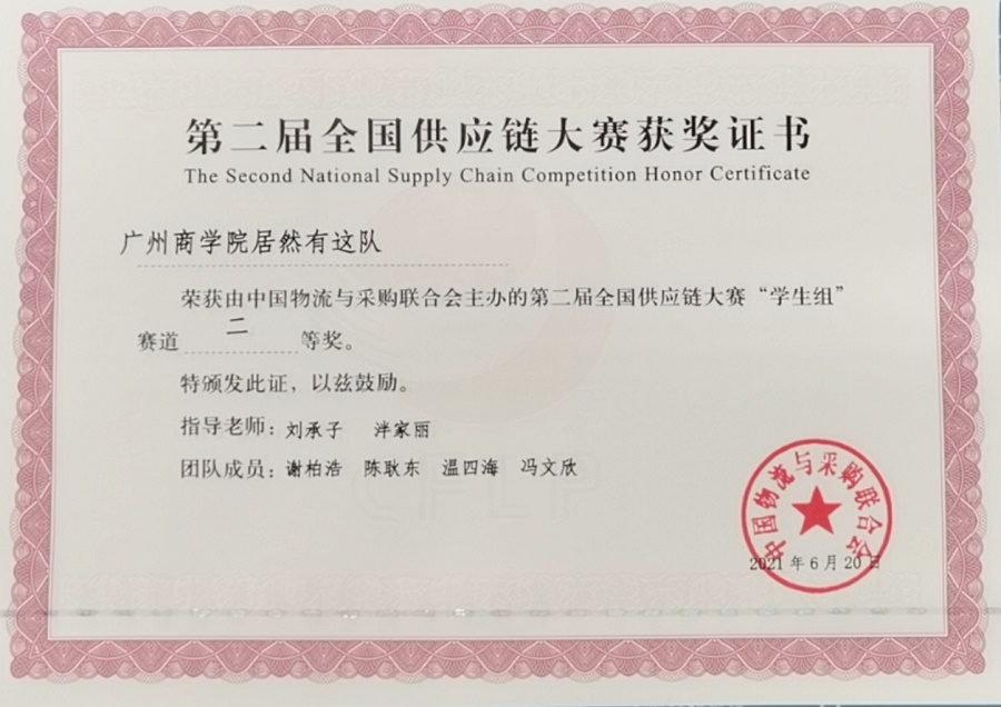 6月20日,由中国物流与采购联合会主办、湖南现代物流职业技术公司承办、厦门易木科技有限公司提供技术支持的第二届全国供应链大赛落下帷幕,由太阳成tyc7111cc刘承子、泮家丽老师带领的物流管理专业李文浩、陈荣保、李贵明与马梦尘同学组成的三丝炒米粉队和谢柏浩、陈耿东、温四海、冯文欣同学组成的居然有这队,在本次全国总决赛中双双斩获员工组二等奖。