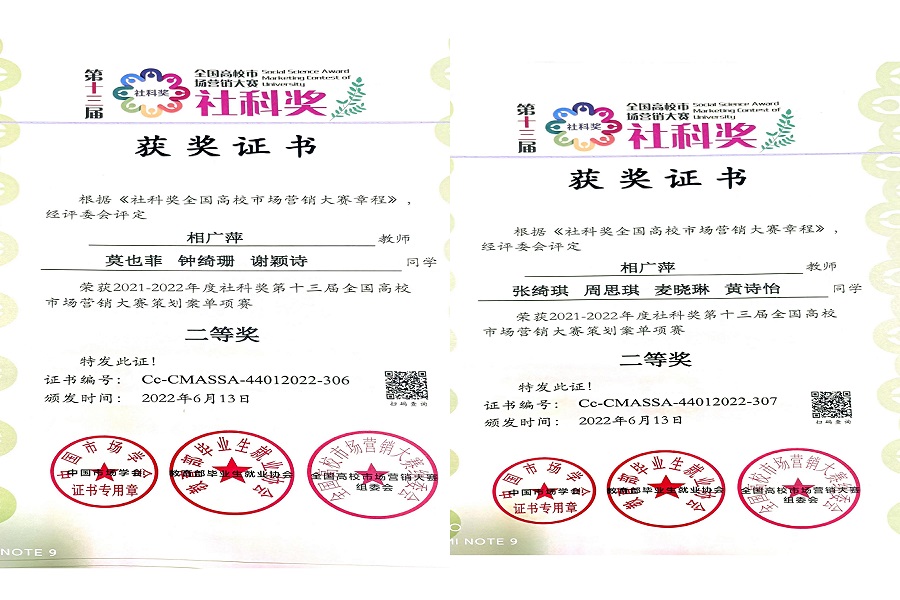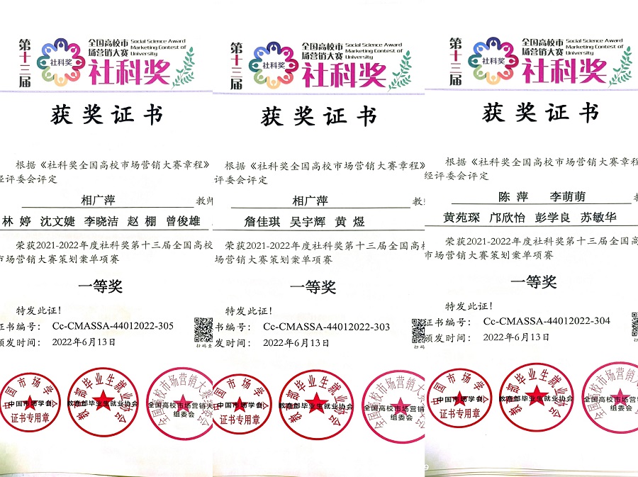 社科奖全国高校市场营销大赛是由中国市场学会、教育部高校毕业生就业协会、教育部全国高校现代远程教育协作组主办的面向全国高校在校员工包括港澳台地区高校在校员工的营销实践技能与创新创业能力竞赛活动。作为一项全国性公益赛事,大赛已成为国内高校界参与人数最多、影响力最广、规格最高的国家级营销类学科赛事。本次大赛从2021年9月开赛,历时8个月,共吸引480余所高校、2986支团队、万余名员工参赛,收到纸质及电子各式参赛作品4000余件。公司学子通过前期的知识赛选拔,再到后续选题的确定,团队都保持着不放弃,放手一搏的态度,最终不负众望,取得佳绩。