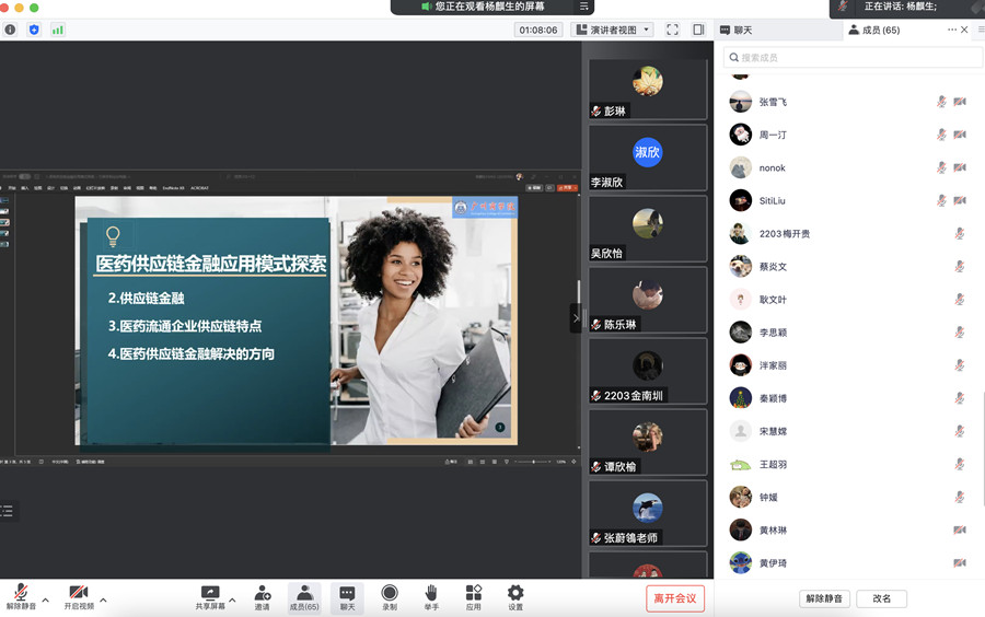 通过沙龙的分享,师生们了解到不能只单单依靠某一企业来解决,需要同时多个方面的共同努力,才能确保供应链金融的健康发展。尤其是医药供应链金融这一种的融资模式,涉及核心企业、供应商、交易平台等多方资源的整合,才能确保医药供应链金融完成多流信息的整合需要加快企业信息化建设,实现医药行业以及医疗端口的普惠金融。