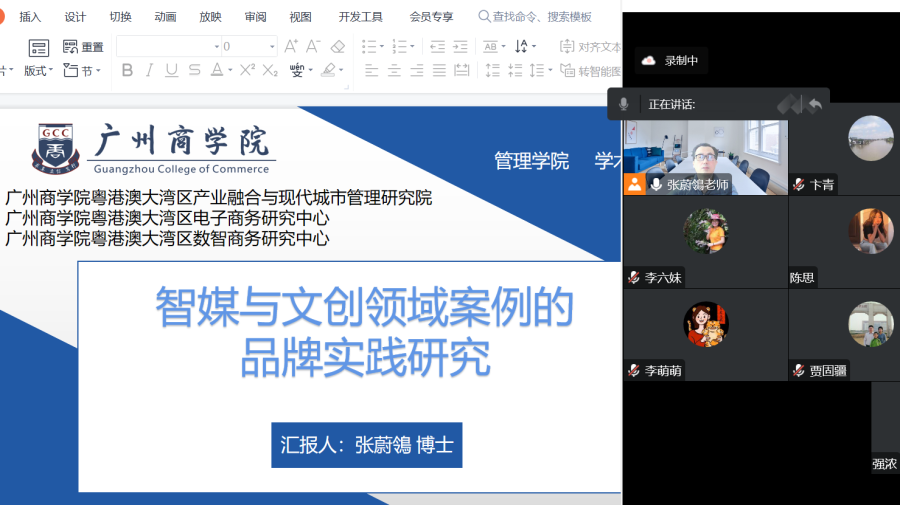 本次沙龙,第一位主讲人为市场营销教研室的张蔚鴒博士,他报告的主题是“智媒与文创领域案例的品牌实践研究”。张博士分享近期所写的两篇品牌案例研究论文,选取智媒与文创两个领域的案例,用品牌管理理论与分析工具,剖析案例企业的品牌实践活动,更好理解企业行为,理清成功路径与发现不足,提出策略建议与提升思路,以及行业启示。智媒领域选取南方都市报,以及从品牌口号变迁视角。文创领域选取广州红色文创产业,以及从红色资源融合视角。