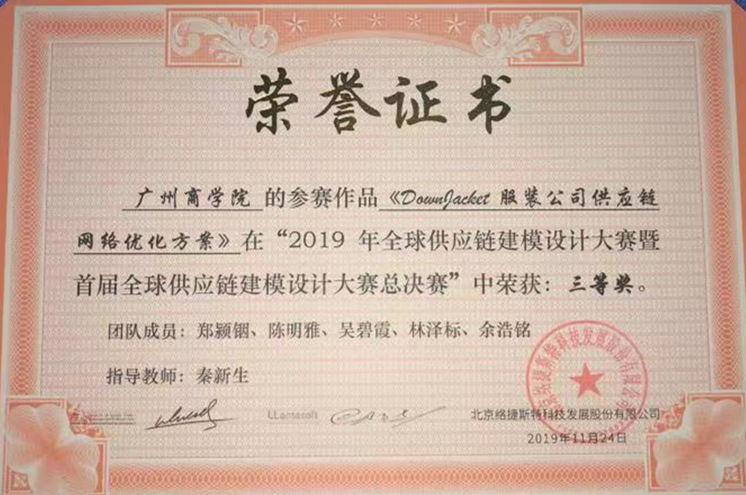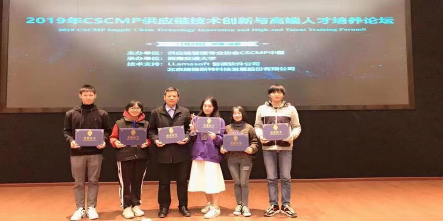 11月24日,2019年中国CSCMP供应链技术创新与高端人才培养论坛暨首届全球供应链建模设计大赛总决赛在西南交通大学落下帷幕。公司由17物流专业郑颍铟、陈明雅 、吴碧霞和18软件工程专业林泽标、余浩铭组成的“物工联盟”队荣获三等奖,也是物流管理专业学子首次在A类大赛中获奖,太阳成tyc7111cc荣获最佳组织奖。团队在太阳成tyc7111cc教师秦新生的指导和带领下,指导员工认真收集案例数据,深入分析企业存在的问题,综合运用运筹学、供应链优化、物流建模仿真等知识,形成比赛作品,最终取得了全国总决赛的资格。