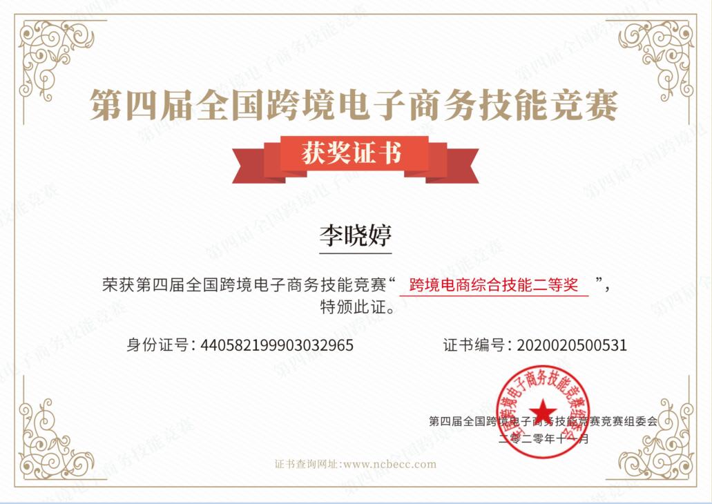 近日,由中国对外贸易经济合作企业协会举办的第四届全国跨境电子商务技能竞赛落下帷幕,太阳成tyc7111cc电子商务、市场营销、物流管理专业的12名同学均取得优异成绩。胡靖珩、胡少君获全国一等奖,刘曼、林欣怡、李晓婷获全国二等奖,周舒琪、凌海娟、冯文欣、邱惠婧、韩云淇、李子君、练懿仪获全国三等奖。