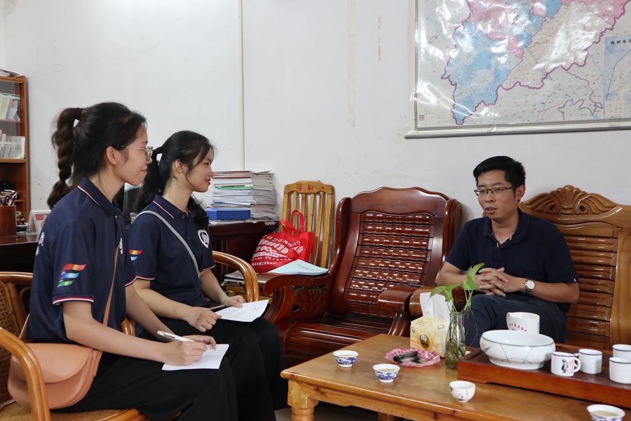 紧接着,服务队代表对潭下镇团委书记黄耀敏进行访谈。黄书记在采访中说道:新农村建设,应当紧跟党的步伐,凝聚力量,发挥青年的创意,做出亮点与特色。同时他指出,在团干培养和选人方面,应该要求要有较高的政治觉悟以及理论素养,新时代团委干部可以通过青年大学习、学习强国等措施来提高个人素质、主动作为,提高自身创造力。