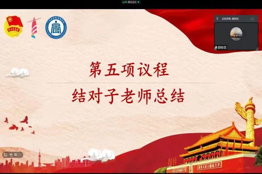 结对子老师胡桂花进行总结,深情寄语支部青年,一要“读通读懂”百年历程,加强对中国革命历史的学习和研究,二要“坚定坚守”理想信念,牢记党的初心使命,三要“探索探求”力量根源,时刻谨记求真、立信、笃行校训,切实把学习党史与个人职业发展目标结合起来,学出忠诚、学出信仰、学出本领,以“学思践悟”促“知行合一”,勇做时代青年。