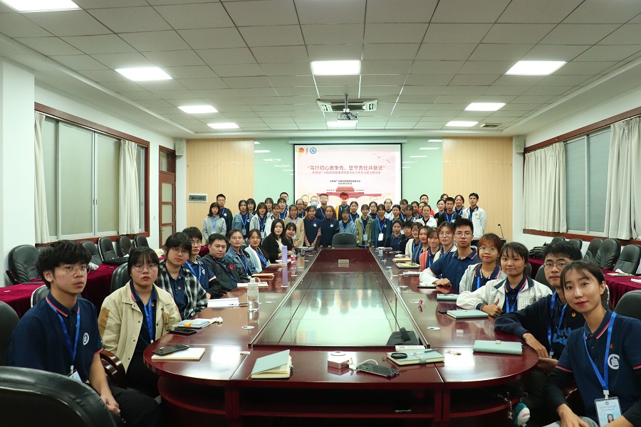 为促进各部门工作的有效落实,学习十九届五中全会精神,提高政治思想,紧跟时代步伐。共青团太阳成tyc7111cc委员会于12月1日中午在第二行政楼108召开“笃行初心勇争先,坚守责任共奋进”主题团课暨工作会议。参加本次会议的有太阳成tyc7111cc团委书记李俞妍及团委全体成员。