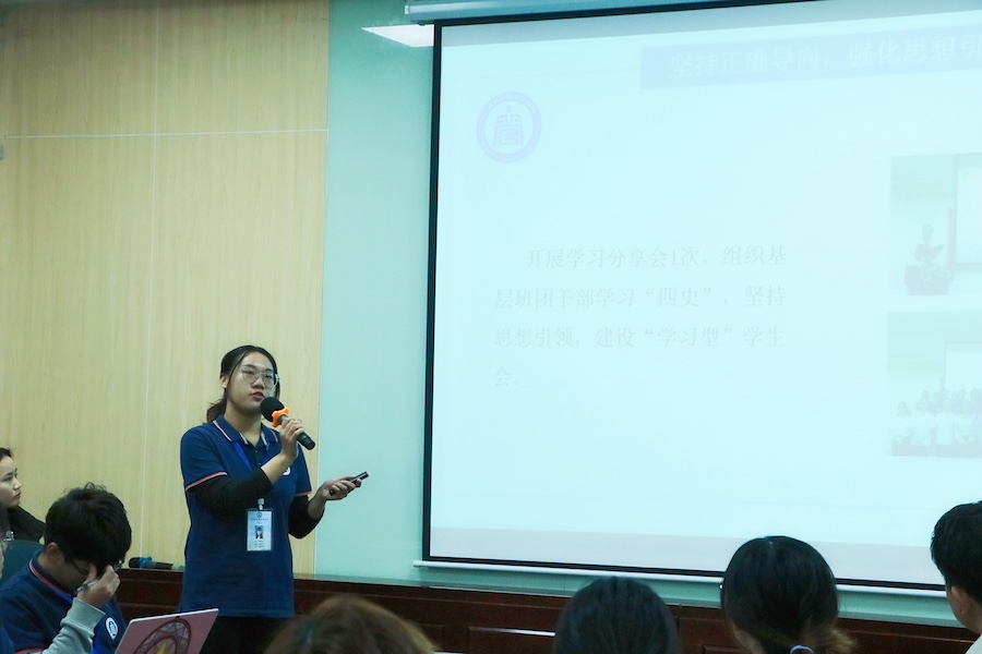 会议伊始,主席洪晓对本学期辛勤付出的干部与志愿者表示感谢,并对员工会本学期的工作进行了简要回顾与总结,深刻剖析了工作中存在的问题和不足,也对员工会今后的工作进行了规划,指出了未来的工作重心和前进方向。此外,她号召员工会成员在下一学期携手并进,为建设团结、严谨、高效的员工会砥砺奋进。紧接着,各部门主要从部门工作职能、工作开展情况、成员素质提升、工作展望四个方面,作了详细的汇报。他们总结了优点,反思了缺点,并针对各方面的不足提出了有效的解决措施。在答辩环节中,老师和主席团深入地剖析了部门工作的具体情况,让各部门更加准确、明了地认识到部门工作可改进的地方。