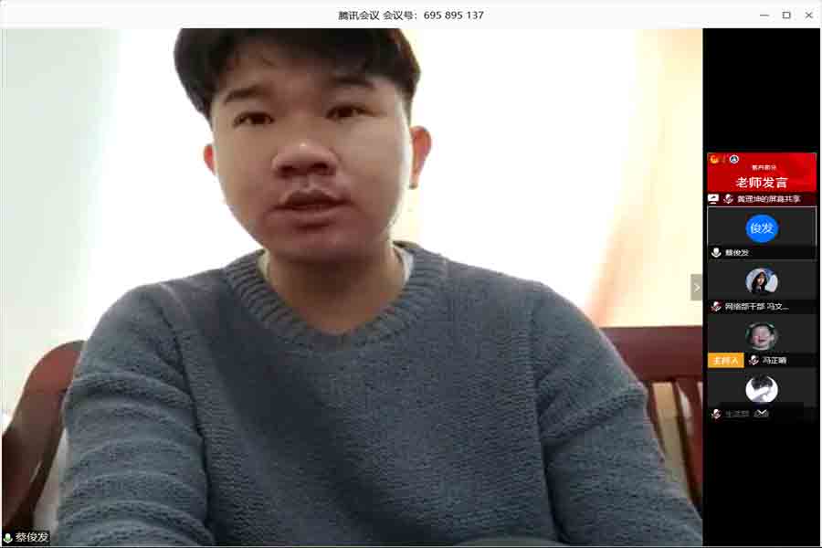 蔡俊发老师为本次会议作总结发言。他首先肯定了员工干部近期的工作表现,并从安全意识、工作态度、榜样作用三个方面对员工干部提出了要求。一是干部要提高安全意识,做好个人防护,为抗击疫情奉献力量;二是适当调整心态,勇于肩负责任,注重工作时效与质量;三是做好目标规划,认真对待网课,做好榜样作用。