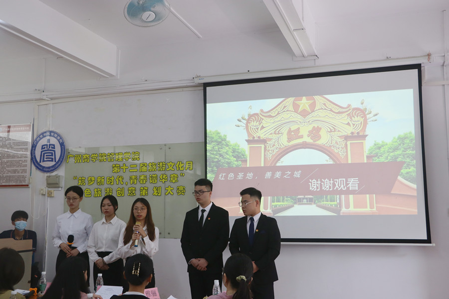 本次活动共吸引32支队伍参与,参与人数达128人,有16支队伍进入了决赛。本次决赛有红色旅游线路设计、红色旅游营销方案设计和红色精神微讲解三个项目。在红色旅游线路设计中,参赛队伍结合旅游目的地策划出创新多样化的旅游路线,充分展示了蕴藏在历史中的红色文化;在红色旅游营销方案设计中,参赛队伍精准定位旅游市场,提出了红色旅游“品牌化”、“IP化”、“人物化”等新营销模式;在红色精神微讲解中,参赛选手以声情并茂的讲解带领观众们回顾先辈们的革命历史,感受先烈们的红色精神。