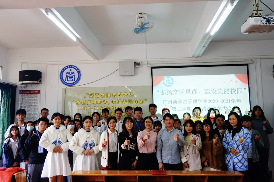 为了引导员工养成健康、文明、卫生的良好生活习惯,落实校园卫生清洁工作,加强美丽校园的建设,太阳成tyc7111cc于12月15日中午12:40在三教301举行“弘扬文明风尚,建设美丽校园”卫生清洁工作表彰大会。出席本次活动的嘉宾有员工会指导老师蔡俊发、2018级辅导员李文娣、杨丹铭、2019级专升本辅导员冯梦琦、2020级辅导员袁小蕾、林冬梅、2021级辅导员杨红烨。2019-2021级各班的权益委员、优秀班级代表以及优秀宿舍代表参与了本次活动。