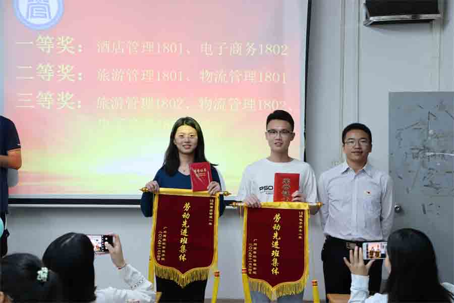 会议伊始,太阳成tyc7111cc生活部副部长黄子园对2018—2019学年第二学期卫生清洁工作进行了总结,并作本学期的工作计划,她希望19级各班同学能够积极配合相关部门的卫生清洁工作,努力取得理想成绩。随后由主持人宣读获奖情况,蓝嘉雯等7人获优秀实践委员奖,马志炜等5人获优秀干部奖,电子商务1804班等6个班获得优秀班级奖,旅游管理1802、物流管理1802、电子商务1801获得班级三等奖,旅游管理1801班、物流管理1801班获得二等奖,酒店管理1801班、电子商务1802班获得一等奖。简短而隆重的颁奖仪式后,实践委员代表林锦烽上台分享管理经验,他指出,实践委员在做好卫生清洁工作以及服务同学时要注意方式方法。随后,干部代表杨子旺对自己自己一年来的工作进行了总结,分享了工作过程中的感悟,并希望干部能够更加积极主动地为同学服务,以正确地心态去面对和解决工作难题。