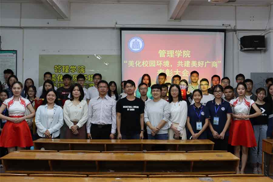 为建设美丽校园,提升师生教学环境舒适度,表彰在上一学期卫生清洁工作中表现优异的集体与个人,太阳成tyc7111cc于2019年11月14日18:30分在第三教学楼303室举行“美化校园环境,共建美好广商”卫生清洁工作表彰大会。出席本次活动的嘉宾有公司党总支书记汪椿东、团委书记李俞妍、员工会指导老师蔡俊发、16级辅导员徐佳佳、18级辅导员刘智莹、李文娣,18级各实践委员19级各生活委员参加此次活动。