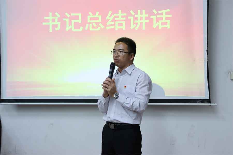 会议最后,由汪椿东书记作总结讲话。他对干部工作和各班的卫生工作成果表示肯定,以及各班同学提出了两点希望。第一,他希望同学们不仅要注意教室和小广告区域的清洁,还要加强宿舍内务的整理,打造良好的学习和生活环境;第二,他希望19级同学和员工干部能够继续努力,落实每一项工作,积极做好美化校园环境的建设。
