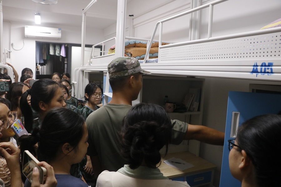 内务整理是大一新生军训的必修课,每个人都有责任和义务维护宿舍卫生和整洁的内务。傍晚时分,结束一天的辛苦训练,教官来到新生宿舍指导大家进行内务整理规范的学习并对大家提出具体要求。他们深入新生宿舍,亲自示范,手把手教各宿舍长如何整理内务,要求大家从身边小事做起,整理好床铺,私人物品收拾整齐摆放在柜子里,其余物品按要求整理。本次训练旨在提高新生的内务标准和加强新生的宿舍整理意识,引导他们养成良好的生活习惯和生活作风,营造整洁舒适的生活环境。