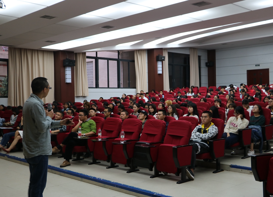 随后,由列晓明从旅游行业目前发展情况、旅游行业所面临的机会及危机、自我游网络科技有限公司、旅游专业员工的职业规划和能力培养方面四个方面进行授课。他用大家熟悉的旅行社举例,揭示了旅游行业从信息化到智慧旅游发展的根本是以人为本,旅游从业人员掌握专业知识的重要性,阐述了“做旅游要读旅游”的必要性。最后,他提出,作为旅游公司的员工,需要认真锻炼以下六种能力:扎实的基础知识、持续的学习能力、良好的沟通能力、谦卑、团队意识。