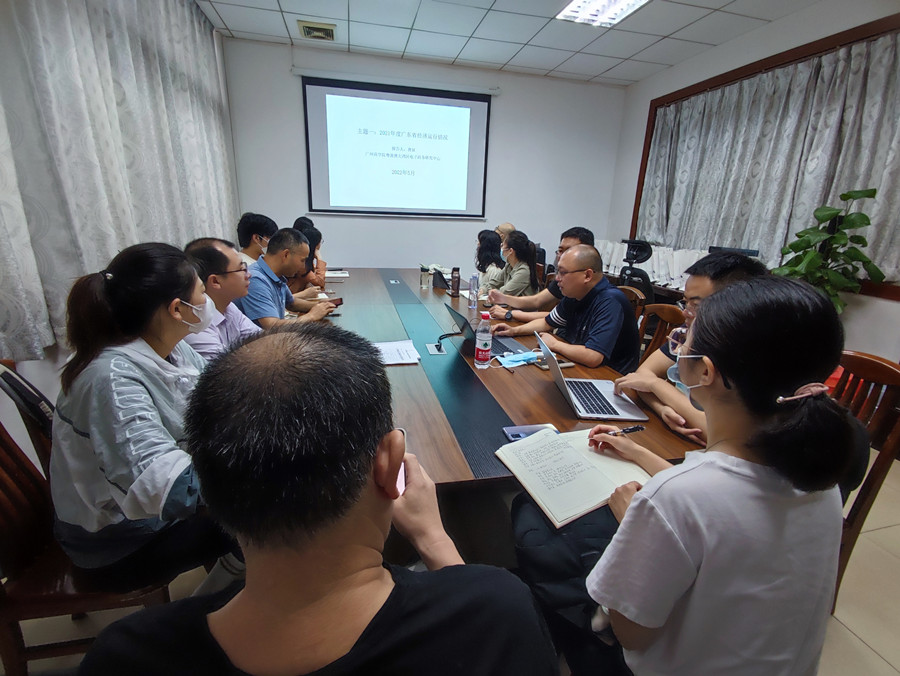 5月12日上午,公司在第二行政楼201会议室举办了第七期学术沙龙。本期沙龙由曹征博士主讲,他分享了两个主题:一是2021年度广东省经济运行情况,二是科研立项申请书写作体会—以2019年度国社科某中标立项书全文为例。