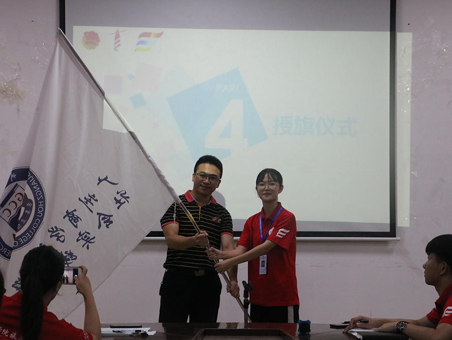 启动仪式在团歌奏唱中拉开了帷幕。蔡俊发对本次社会实践活动做大致的准备情况汇报,向大家介绍本次社会实践服务队的具体服务内容,分别对党员的“星火燎原党建活动”、创新乡村的“活力乡村活动”、传播传统文化教育的“春雨支教活动”、“追梦青春活动”以及与旅游专业相结合的“特色文旅活动”进行介绍。会议播放了上一年三下乡活动的视频,让队员们对三下乡活动有更进一步的了解,激励各位队员再接再厉。视频回顾后,汪椿东为服务队队长李心怡进行授旗仪式,昭示着出征的号角正式吹响。李心怡还带领队员们进行庄严宣誓,重申志愿服务的理念,并承诺尽全力做好服务工作,积极为农村建设建言献策。
