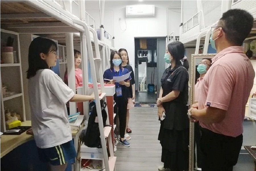 出发检查前,党总支书记汪椿东强调在疫情防控期间,要细化各项防控措施,做好宿舍等重点区域的卫生防控工作,让同学们养成良好的卫生习惯,做好个人防护。同时他也对员工干部提出希望,在接下来的学习生活中员工干部要作出表率,起到榜样作用,积极引导同学们做好疫情防控各项工作。