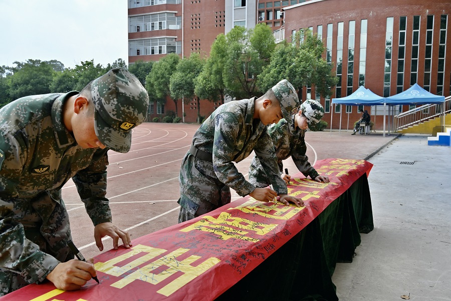 铭记历史,共抒爱国情。在纪念九一八事变九十周年党史学习教育暨新生团员教育活动上,400余名师生通过聆听优秀团员代表谢欣如宣讲党史、优秀退役老员工士兵余博朗诵,共同回望中国共产党团结带领中国人民,浴血奋战、百折不挠的抗战史诗,激励21级新生奋发图强,书写青春担当。通过横幅亲笔签名的形式向革命先烈致敬,表达对祖国、对和平、对未来无比热爱的赤子之心。党总支书记汪椿东强调,各位团员青年要学党史,学习伟大抗战精神,在伟大精神谱系中汲取奋进力量,实现新作为,创造新辉煌;要讲党史,弘扬伟大抗战精神,争做新时代的先锋力量,始终保持奋斗精神,唱响“请党放心,强国有我”的青春强音,为实现中华民族伟大复兴的中国梦而努力奋斗。