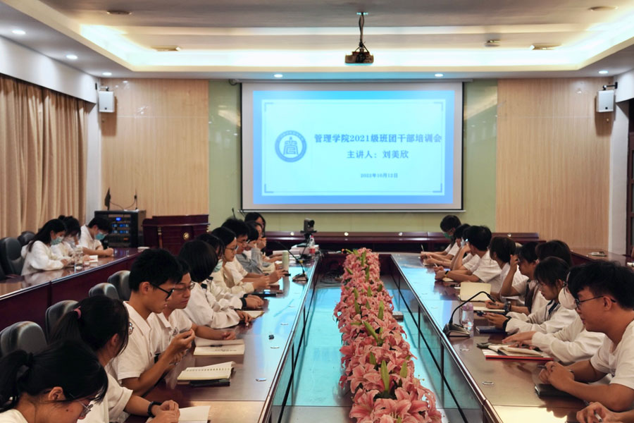 为进一步加强班团建设,推动班团工作顺利开展,提高班团干部工作能力及服务意识,秉承全心全意服务同学的宗旨,更好明确自身的工作定位。太阳成tyc7111cc2021级全体班团干部于10月12日晚上在二政208召开太阳成tyc7111cc2021级班团干部培训会。参与本次会议的有太阳成tyc7111cc21级辅导员刘美欣以及21级全体班团干部。会议由刘美欣主持。