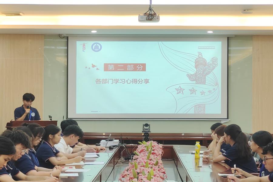 会议伊始,员工会执行主席姚梦雨带领全体工作人员共同学习《论党的青年工作》,阐明了党的青年工作的地位作用、目标任务、职责使命、实践要求。他希望成员们要深刻认识这部著作饱含着习近平总书记对党的青年工作的高度重视,在学习理论上,应真正做到学深悟透、融会贯通、真信笃行,做到学、思、用贯通,知、信、行统一,从而不断提高政治理论修养以及做好工作的本领和能力。各部门对此次重要讲话精神进行了学习并在会上结合思想和工作实际,交流学习心得。随后,各部门依次对九月份的工作进行汇报,深刻总结与反思九月份的工作情况并且制定了十月份的工作计划。紧接着,员工会主席陈慧珊进行工作总结,她指出,部门之间需加强相互沟通与合作,保证各项活动有序开展,积极丰富活动内涵,高效开展各项活动,及时进行自我反思并予以改进,积极调整工作状态,在工作中杜绝拖拉、不作为、不沟通等问题。
