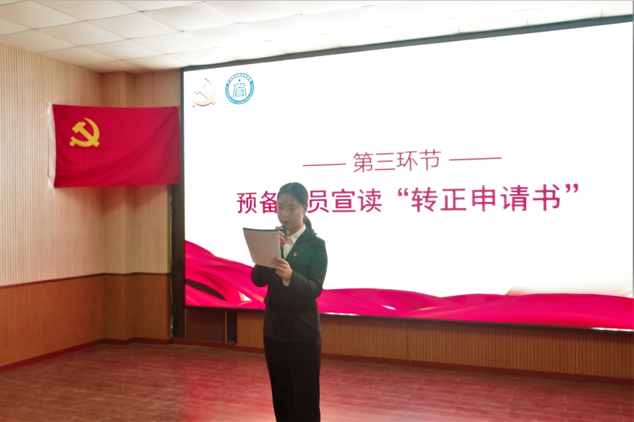 大会在嘹亮的国歌中拉开帷幕,中共预备党员杨淑敏、潘慧颖、罗显雄分别从入党动机、思想认识、预备期间个人表现以及对未来的展望等方面进行详细汇报,表达了向党组织靠拢的决心并提出申请转正。转正申请人宣读“转正申请书”,第一、二介绍人介绍预备党员的主要情况并对其能否转为正式党员发表意见,党小组代表、与会人员发表对三位预备党员的建议,支部委员会报告审查情况后,经支部党员讨论并投票表决,支部书记宣读表决决议,一致同意杨淑敏、罗显雄、潘慧颖3名同志按期转为中共正式党员。