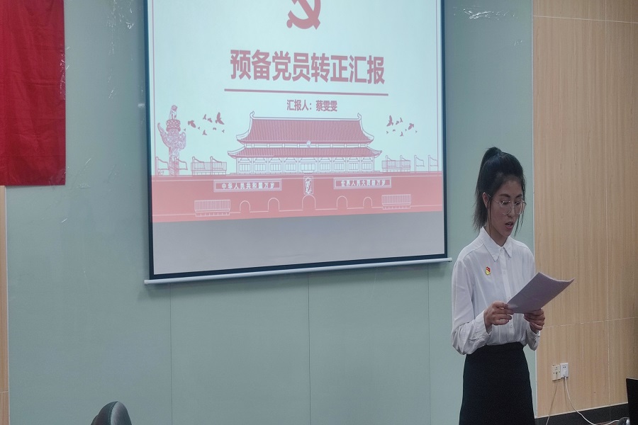 蔡桂榕等7名中共预备党员从预备考察期间个人思想、学习、未来展望等方面进行详细汇报并提出转正申请,各党小组组长、入党介绍人就预备党员预备期表现发表意见。经支部委员会报告预备党员审查情况、支部全体党员充分讨论并进行无记名投票表决后,支部书记宣读表决决议,支部全体党员一致同意蔡桂榕等7名同志按期转为中共正式党员。