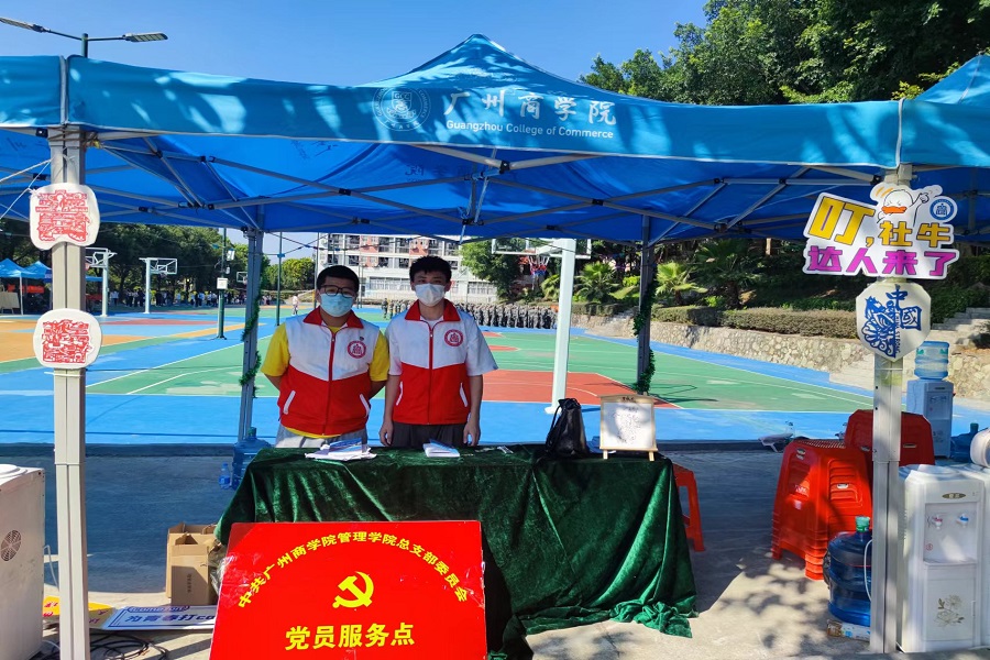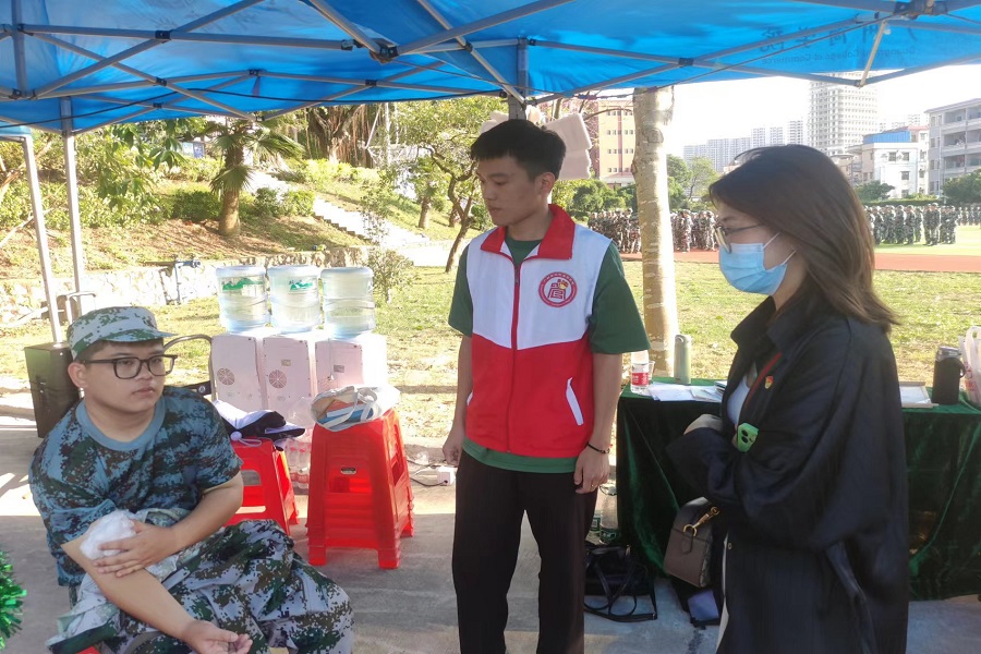 为切实保障军训工作顺利开展,管理公司党总支提前谋划、精心组织安排,在军训休息区设置党员服务点。党员志愿者积极响应号召,争做军训工作勤务员,让党徽闪耀在军训一线,让志愿“红马甲”活跃在军训一线。