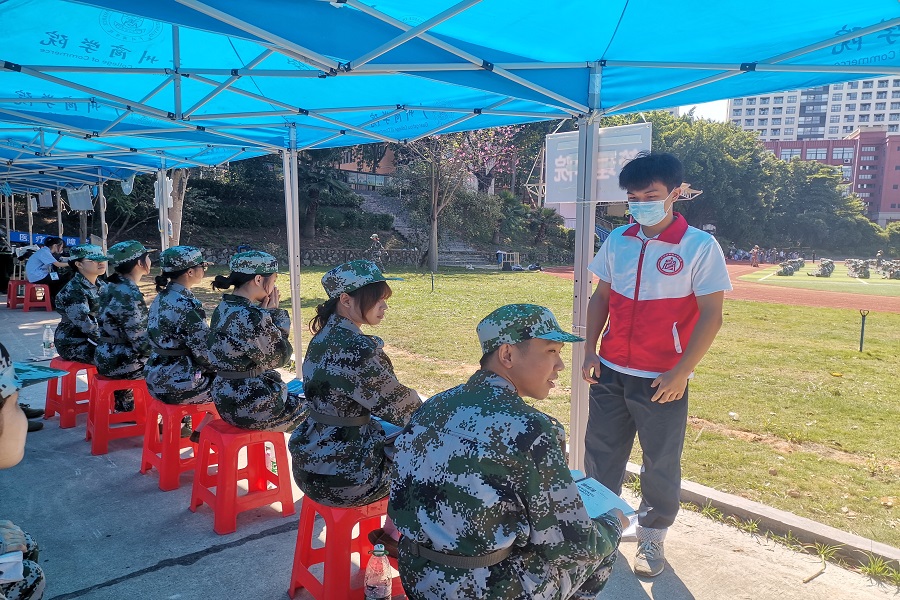 新生军训正当时,党员服务在身边