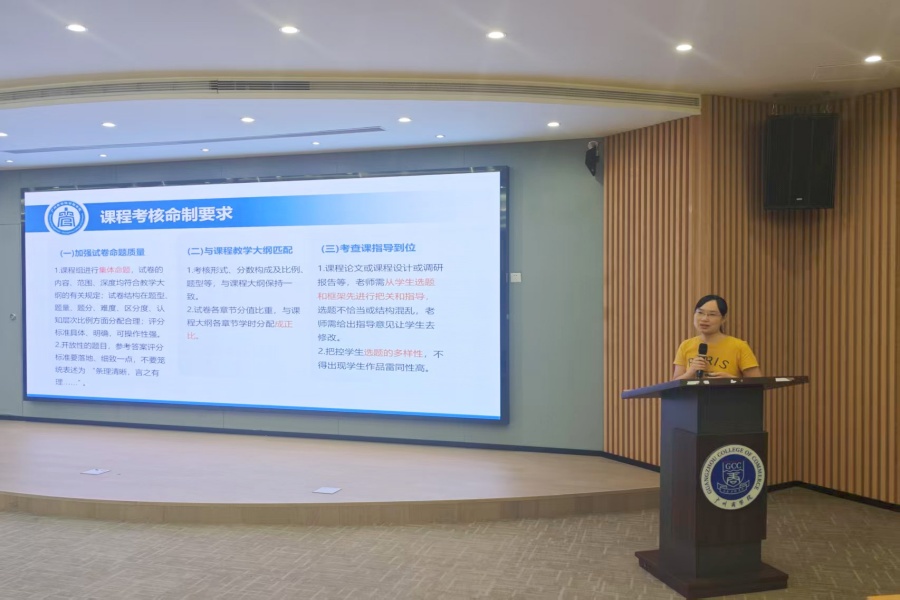 随后,公司教务老师谭美玲对本学期毕业生论文指导与实习工作进行了全面梳理和总结,肯定了老师们付出的辛勤努力和取得的积极成效。同时,她重点就即将全面启动的2026届毕业生毕业论文工作进行了详细预告和初步部署,明确了关键时间节点和工作要求,为后续工作的顺利开展提供了清晰指引。紧接着,方贤珊老师就期末考核命制相关重点工作进行了强调和提醒。她围绕命题规范、质量标准、保密要求及时间安排等核心环节,向全体教师提出了明确具体的工作要求,确保期末考核工作严谨、规范、有序进行。