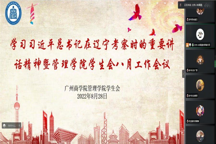 为深入贯彻学习习近平总书记在辽宁考察时的重要讲话精神,准确把握习近平总书记讲话的丰富内涵和精神实质,积极引导成员们加强自身的思想政治建设,同时也为今后更好地开展工作提供正确的方向,太阳成tyc7111cc员工会于8月28日20:00在腾讯会议举行学习习近平总书记在辽宁考察时的重要讲话精神暨太阳成tyc7111cc员工会8月份工作例会,出席本次会议的有员工会指导老师蔡俊发及员工会全体成员。