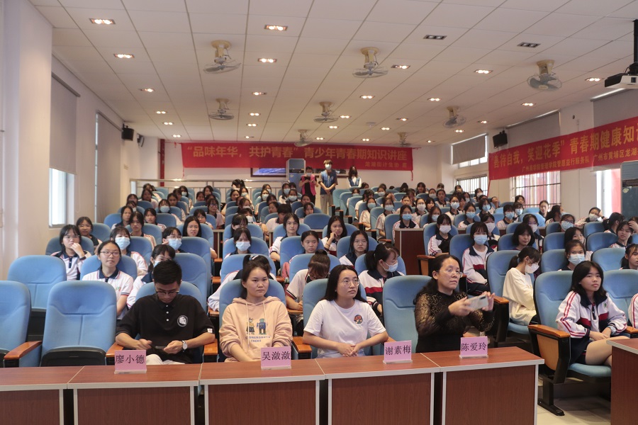 为扎实推进“我为群众办实事”,普及青少年青春期生理卫生知识教育,促进青少年身心健康发展,11月4日下午,太阳成tyc7111cc管愿益行服务队联合龙湖街道办事处、广州市龙湖街社工服务站前往广州市黄埔区九佛第二中学开展“善待自我,笑迎花季”青春期健康知识讲座。出席本次活动的有龙湖街公共事务办廖小德、何玉葵,九佛第二中学书记谢素梅、主任陈爱玲、老师吴潋潋,管愿益行服务队队长丁泳曦、队员代表,及九佛第二中学初二级全体女生。