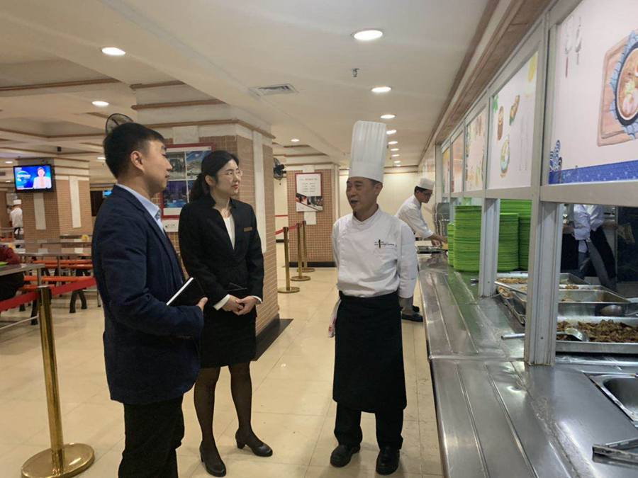 会后,关俊明书记在东方宾馆人力资源总监金燕、培训部经理董玲和人力资源部主任梁丹的带领下,参观了酒店的餐饮、住宿、会展、休闲设施和员工(实习生)的生活场所和条件,一行人在参观过程中就下一步如何加强校企合作进行了深入的交流,争取为公司实习生提供更多的实习选择,使他们得到更好的实践锻炼机会,同时为酒店输送优秀的毕业生和实习生,实现双赢。