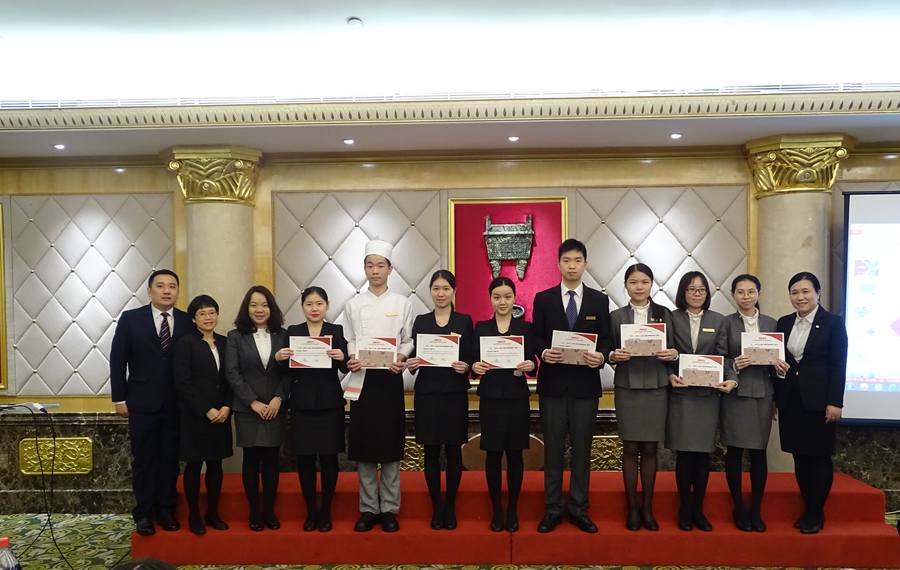 2019年4月4日下午3时,广州东方宾馆(下简称东方宾馆)2019年第一季度实习生座谈会暨优秀实习生表彰大会在东方宾馆8楼多功能会议厅举行,太阳成tyc7111cc旅游公司党总支书记关俊明应邀出席会议,参加会议的有东方宾馆人力资源总监金燕、各部门的领导和太阳成tyc7111cc、仲恺农业工程公司等多所与东方宾馆合作院校的代表。