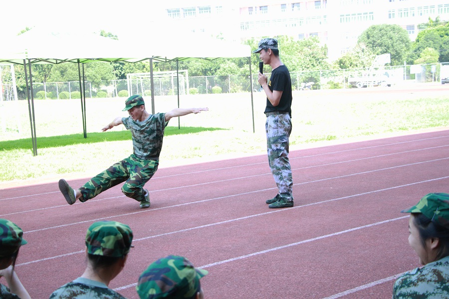 军训虽然苦,虽然累,而且枯燥乏味。但旅游公司的学子们不会就这样屈服,他们苦中作乐,乐在其中。休息的时候,新生们上去表演,展示自己的才艺,也与教官互动,开心谈天。欢乐的时光让新生们遗忘了训练的苦和累。就连在训练期间,教官罚他们趴着,他们也在趴着唱歌,“命运”以痛吻我,我愿报之以歌。这就是旅游公司的学子,坚毅而又乐观。就算面向太阳,与太阳肩并肩,他们也会当作是一种享受。