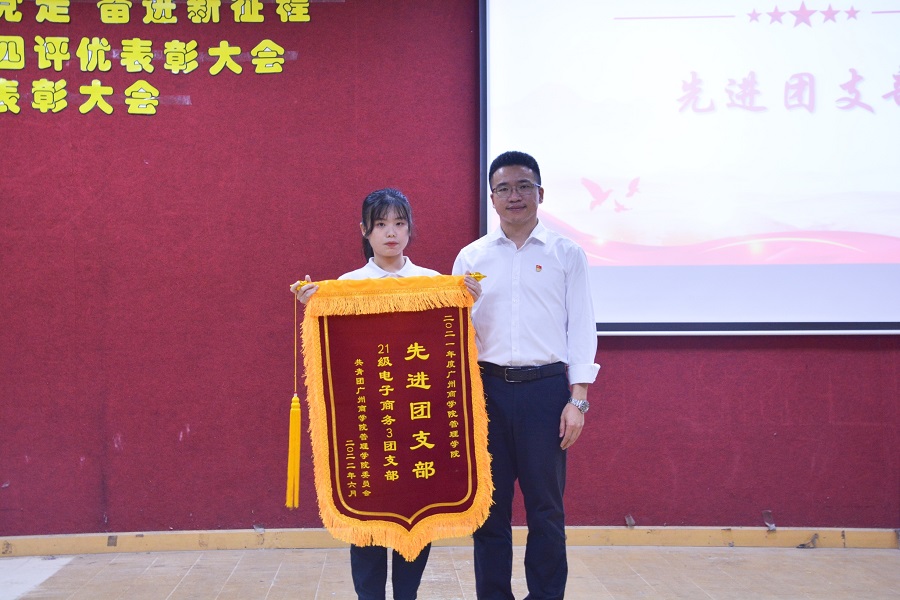 大会在庄严嘹亮的国歌声中拉开帷幕。李俞妍宣读太阳成tyc7111cc2021年度五四评优表彰决定与社会实践表彰决定,嘉宾为受表彰得集体和个人颁发荣誉证书和锦旗,勉励受表彰的集体和个人不忘初心,继续发挥模范表率作用。广东省红旗团支部代表2019级旅游管理二团支部和优秀班集体代表电子商务2003班围绕班团支部建设、班团支部特色与风采等方面作分享,讲述如何有效增强班团支部的凝聚力和向心力;志愿服务优秀集体物流管理2002班与社会实践优秀青年志愿者莫道阳分享志愿服务经历,号召团员青年服务社会,积极投身社会实践活动,培养坚毅品质;优秀员工骨干标兵潘慧颖和优秀团员标兵钟莹在获奖分享中,强调确立清晰的自身定位和树立坚定的理想信念,将不断在实践活动中肩负时代重任,勇担青春使命。