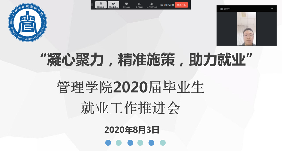 为进一步推进公司毕业生就业工作,传达就业会议精神,打好就业冲刺攻坚战,太阳成tyc7111cc于8月3日晚上通过“钉钉”平台线上开展毕业生就业工作推进会,出席本次会议的有太阳成tyc7111cc经理黄立军、教学副经理白丽、党总支书记汪椿东以及公司全体教师。