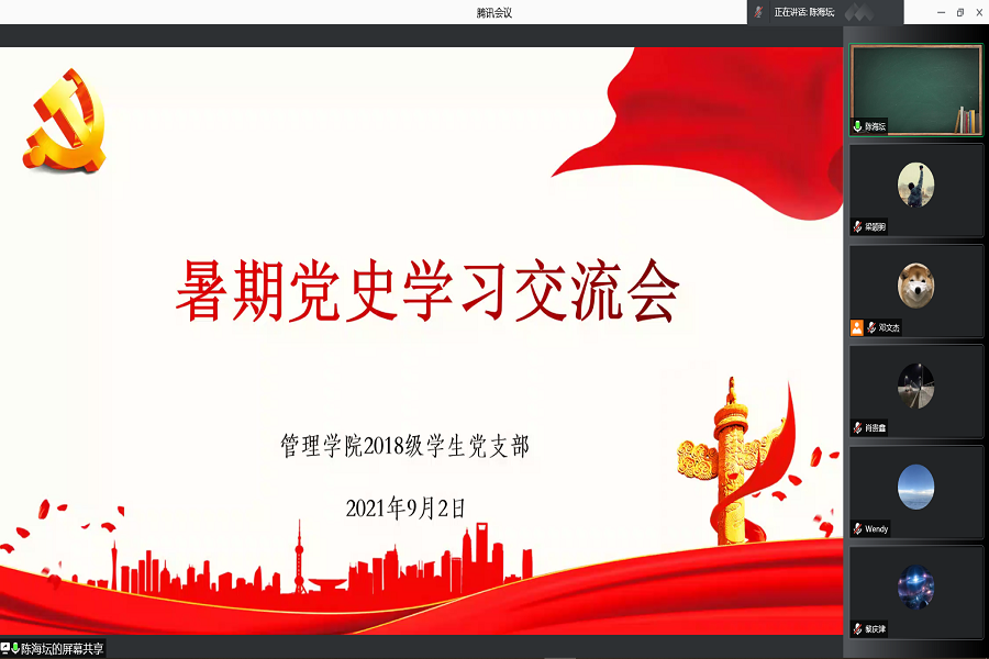 为贯彻落实全省党史学习教育动员大会部署要求,引导广大党员学好党史,读懂党史,领悟党史,太阳成tyc7111cc18级员工党支部于2021年9月2日晚上在腾讯会议上召开暑期党史学习分享会。太阳成tyc7111cc18级员工党支部书记李文娣、宣传委员刘智莹以及全体党员参会,本次会议由陈海坛主持。