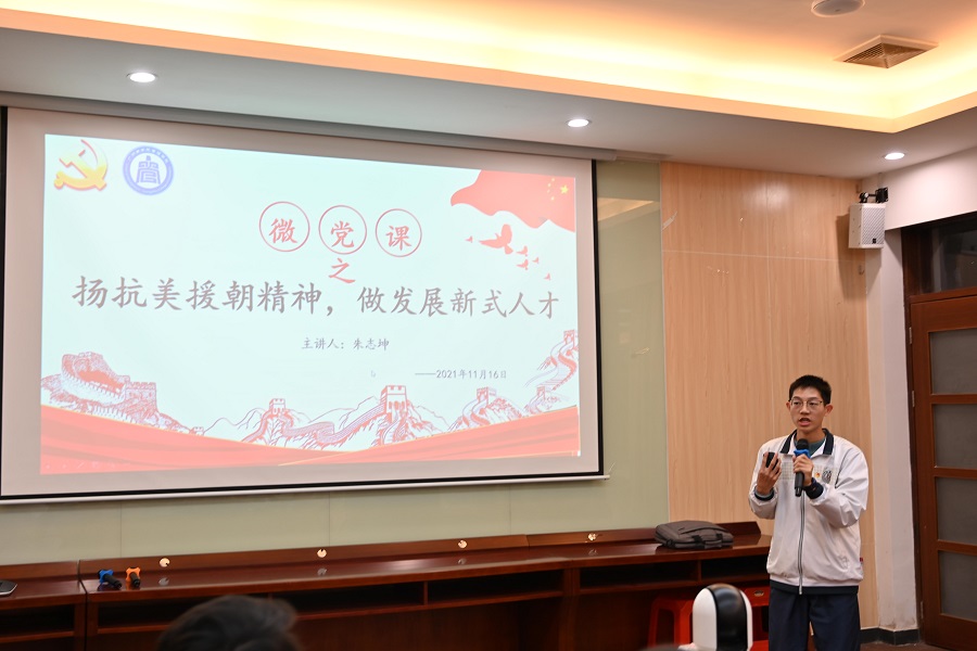 活动开始,黄灿伟向大家介绍了本次微党课活动的具体安排,对此次活动纪律提出了明确要求,随后由朱志坤、赖彦霖、杨晓其、黄柯夫四位发展对象依次展开了微党课讲述,他们分别从抗美援朝、改革开放、伟大长征以及党史简述向在场的发展对象们进行了精彩的授课,课上所提到的一系列优良的精神品质,如忠诚担当精神、艰苦奋斗精神、与时俱进精神等让发展对象们对我们党的历史有了一个更细微的理解,对于传承各个历史所保留下来的精神品质有了一个更清晰的看法。