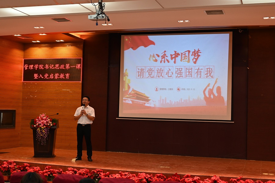 这堂生动的“思政”第一课不仅坚定了管院学子“请党放心,强国有我”的坚定信念,也为同学们未来学习实践、成长成才指明了方向、提供了方法、注入了动力。希望每一名新入学的同学们,踊跃递交入党申请书,尽快从思想上、行动上向党组织靠拢。